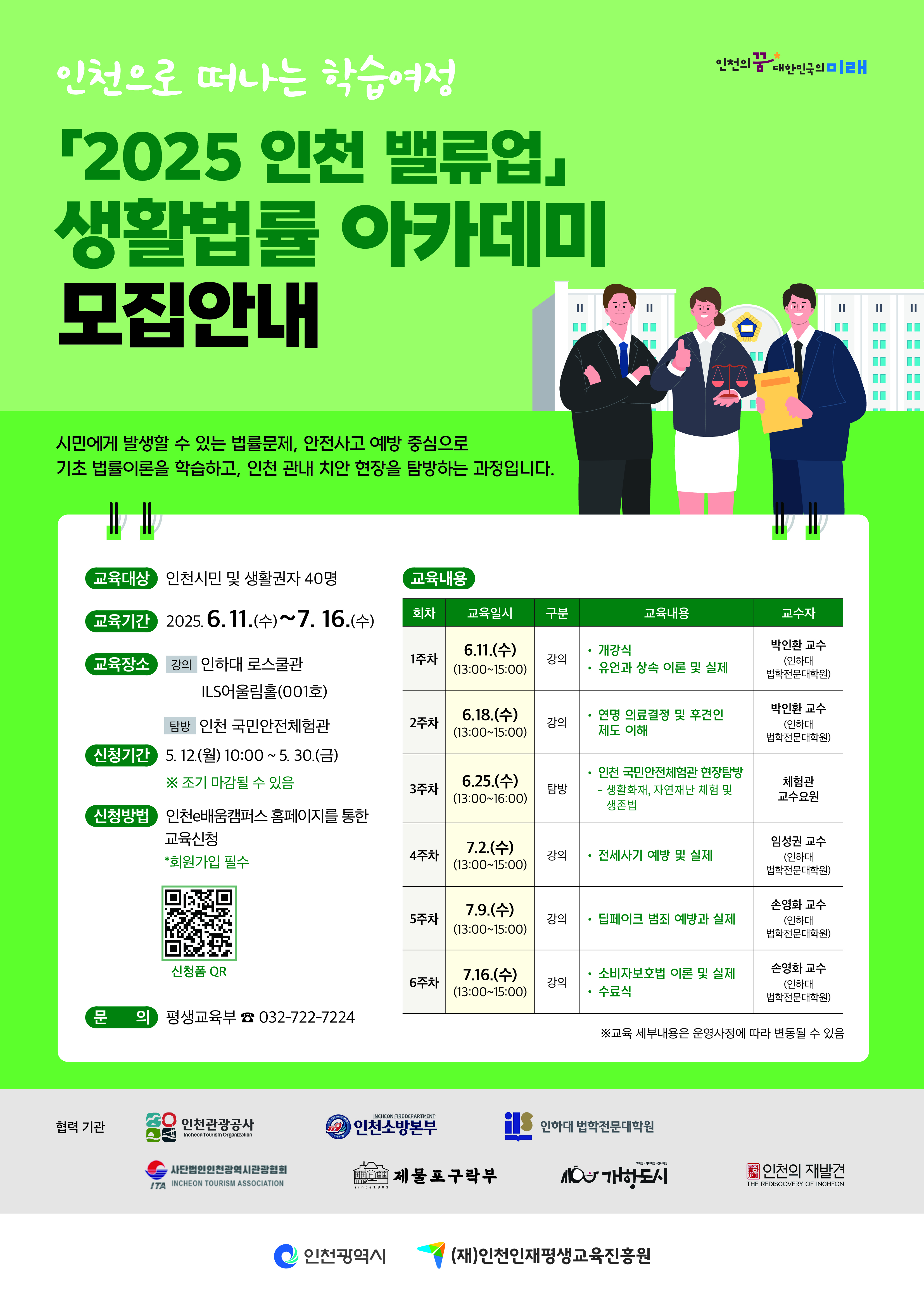 「2025년 인천 밸류업 - 생활법률 아카데미」 수강생 모집 안내
