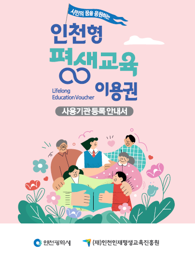 인천시와 (재)인천인재평생교육진흥원은 저소득층과 장애인 등 취약계층의 평생학습 참여를 확대하기 위해 ‘인천형 평생교육이용권’사용기관을 모집한다.