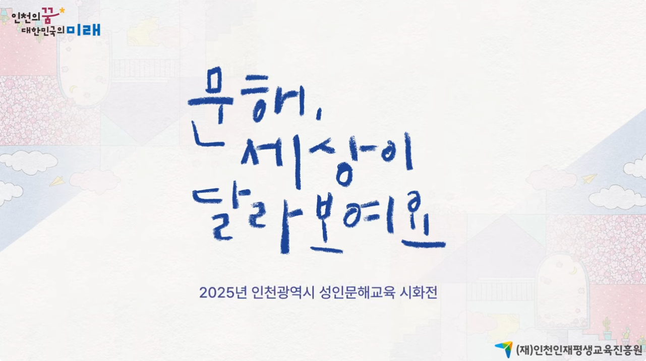 '문해의 달'을 기념하여 진행된 「2025년 인천광역시 성인문해교육 온라인 시화전」의 수상작들을 영상으로 소개합니다.