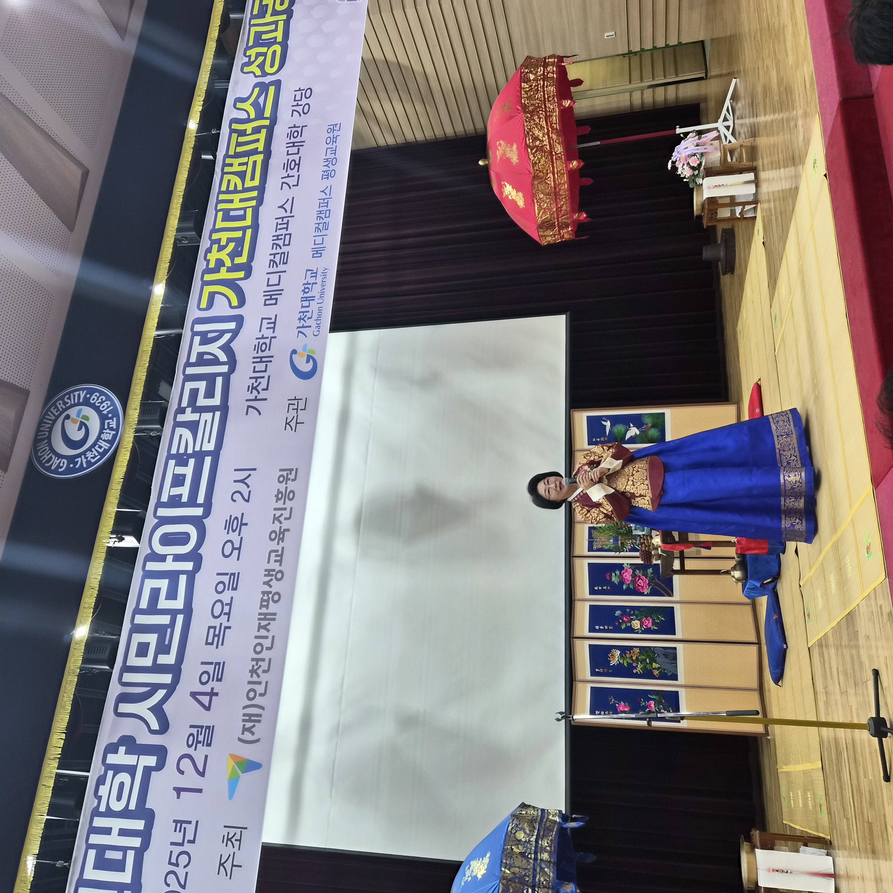 ○ 내용: 2025년 가천대캠퍼스 교육과정 및 성과 공유, 힐링북나래이터 낭독, 전통혼례 시연, 테크니컬 모델 런웨이 등