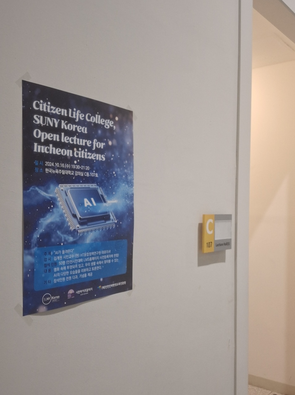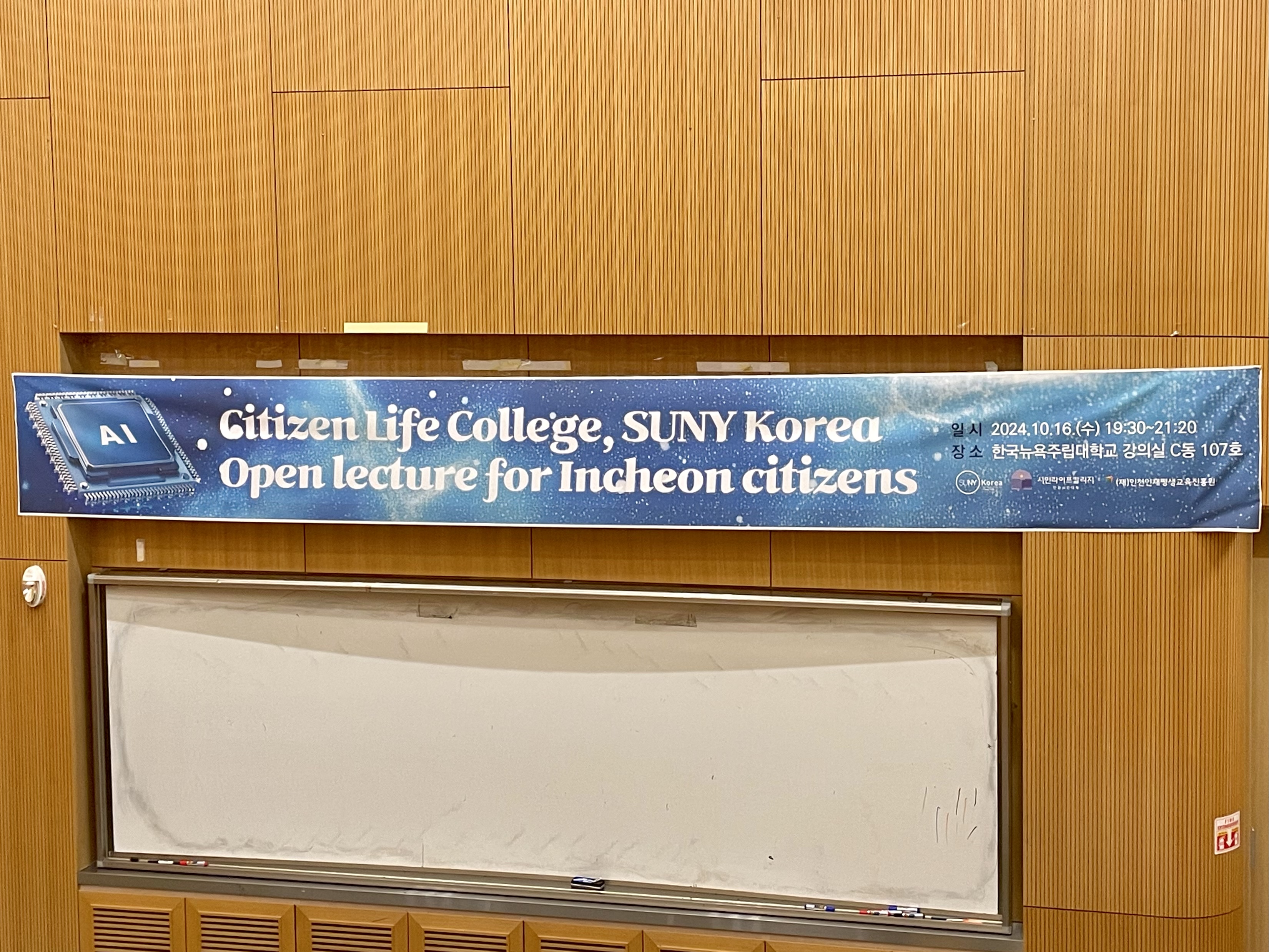 10월 16일 한국뉴욕주립대학교에서 진행된 '인천시민교수 초청 공개 특강' 모습을 여러분들께 공유해 드리고자 합니다.
