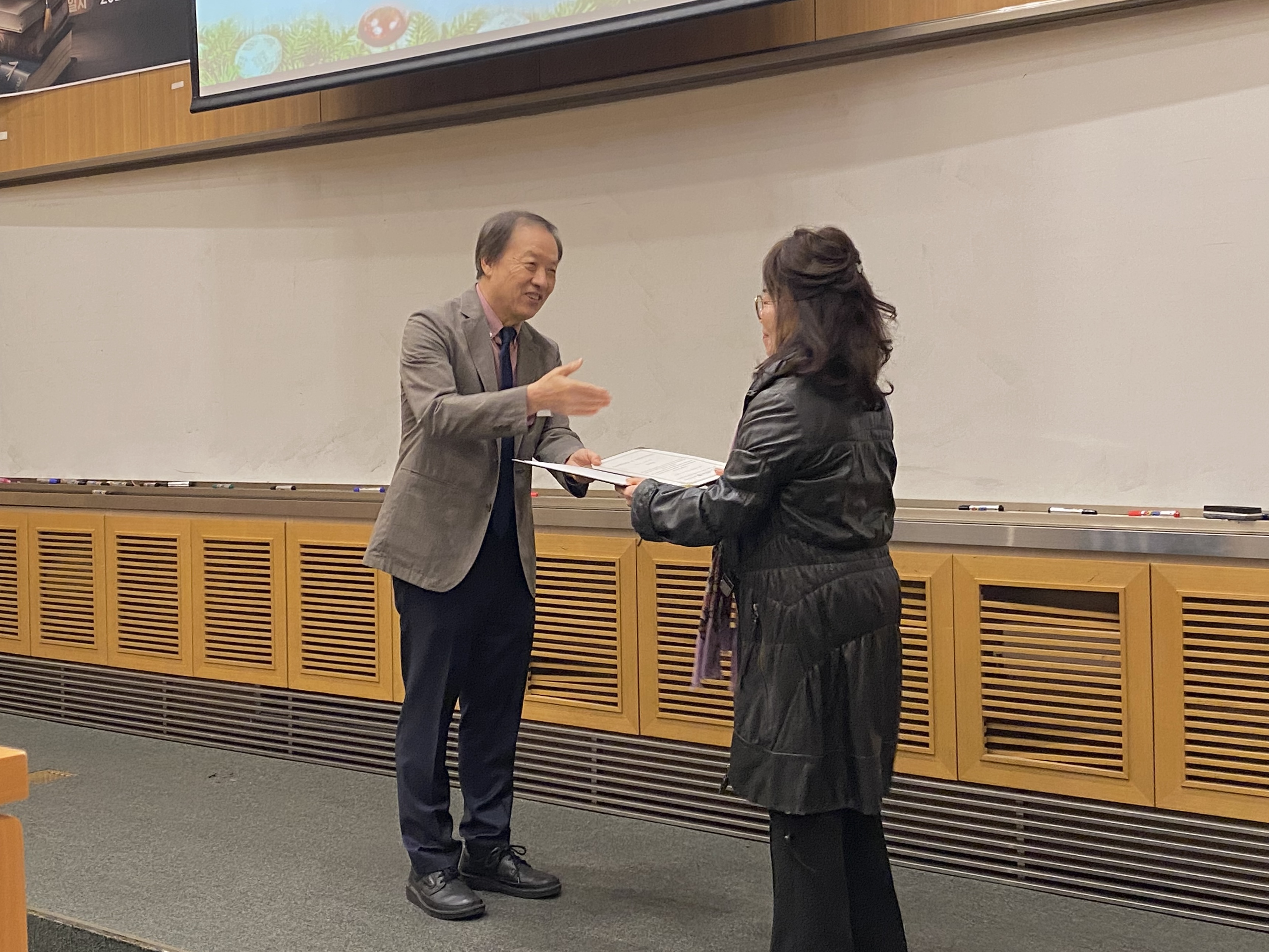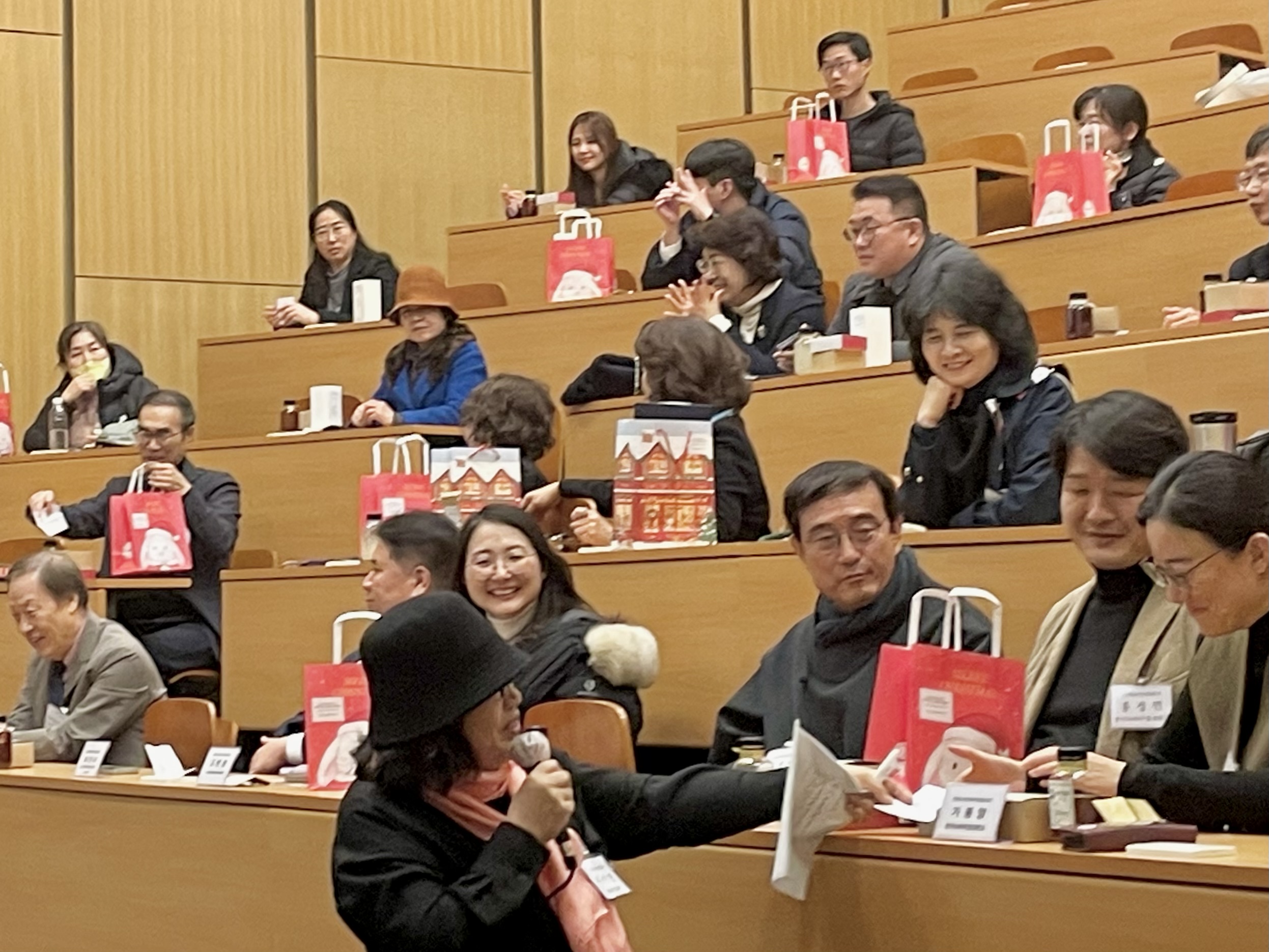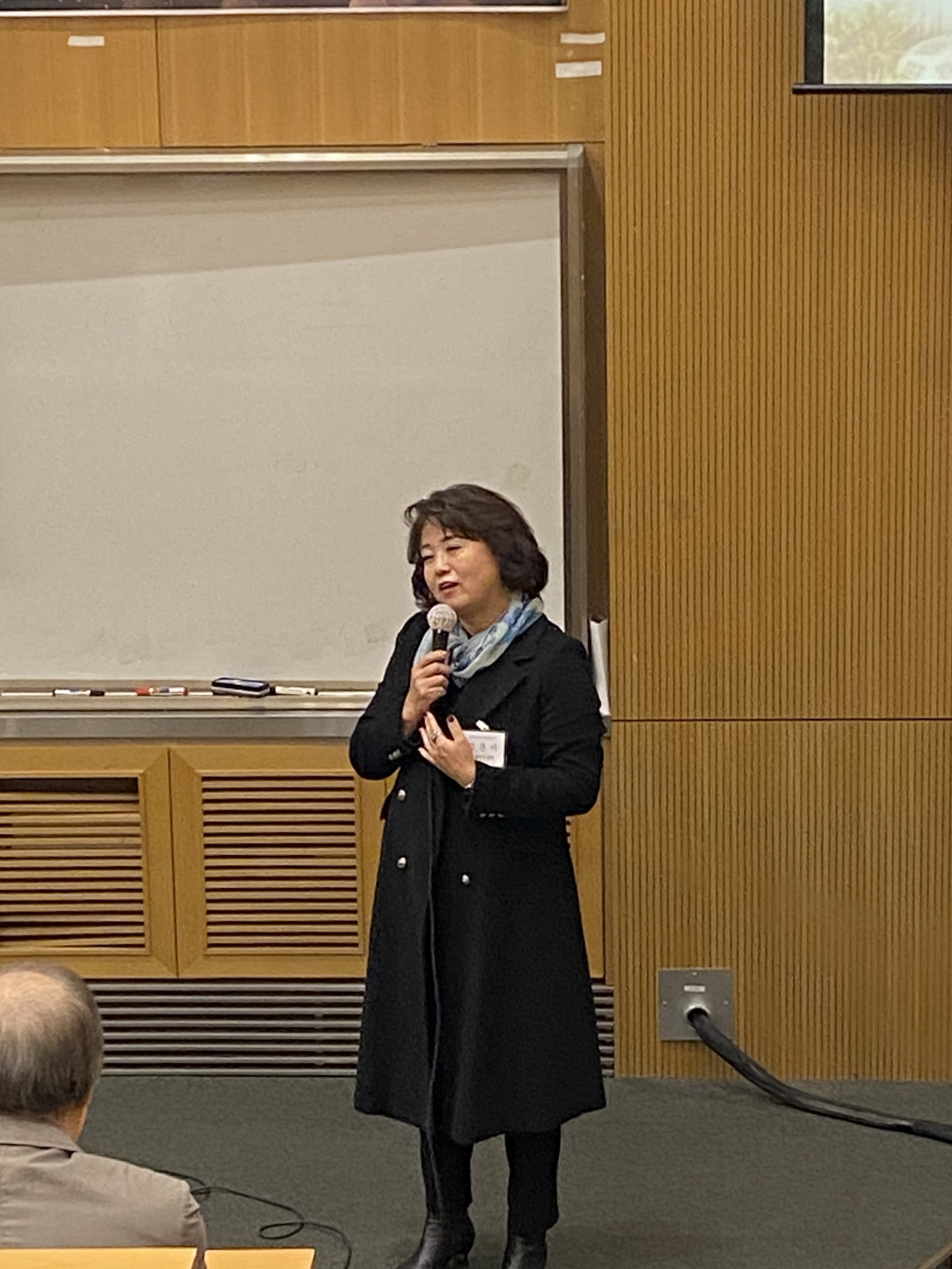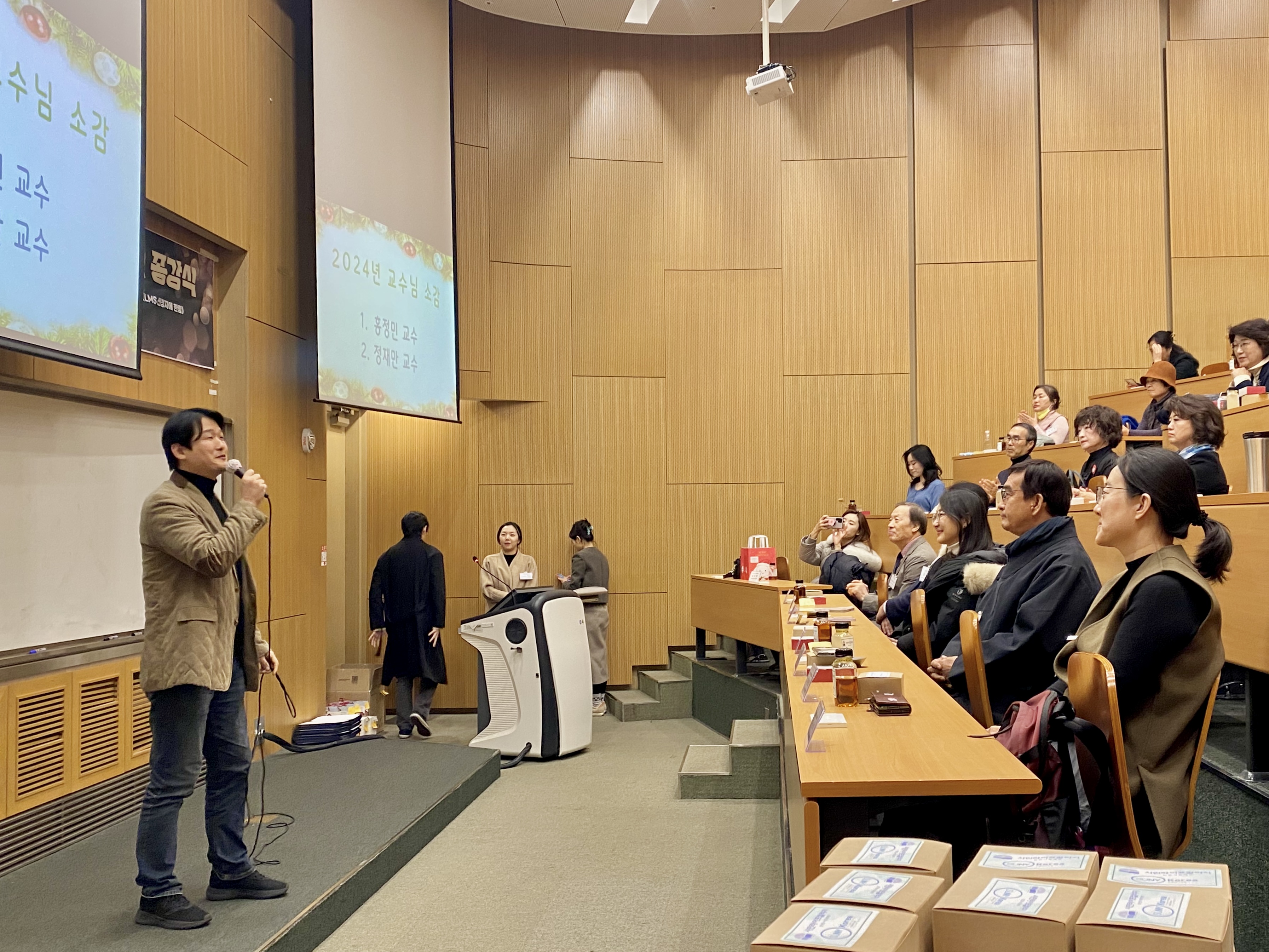 이어 2024년 한국뉴욕주립대캠퍼스 교과목 교수님들 대표하여 학부장이신 홍정민 교수님과 천연염색 명인이신 정재만 교수님의 소감 발표가 이어졌습니다.
