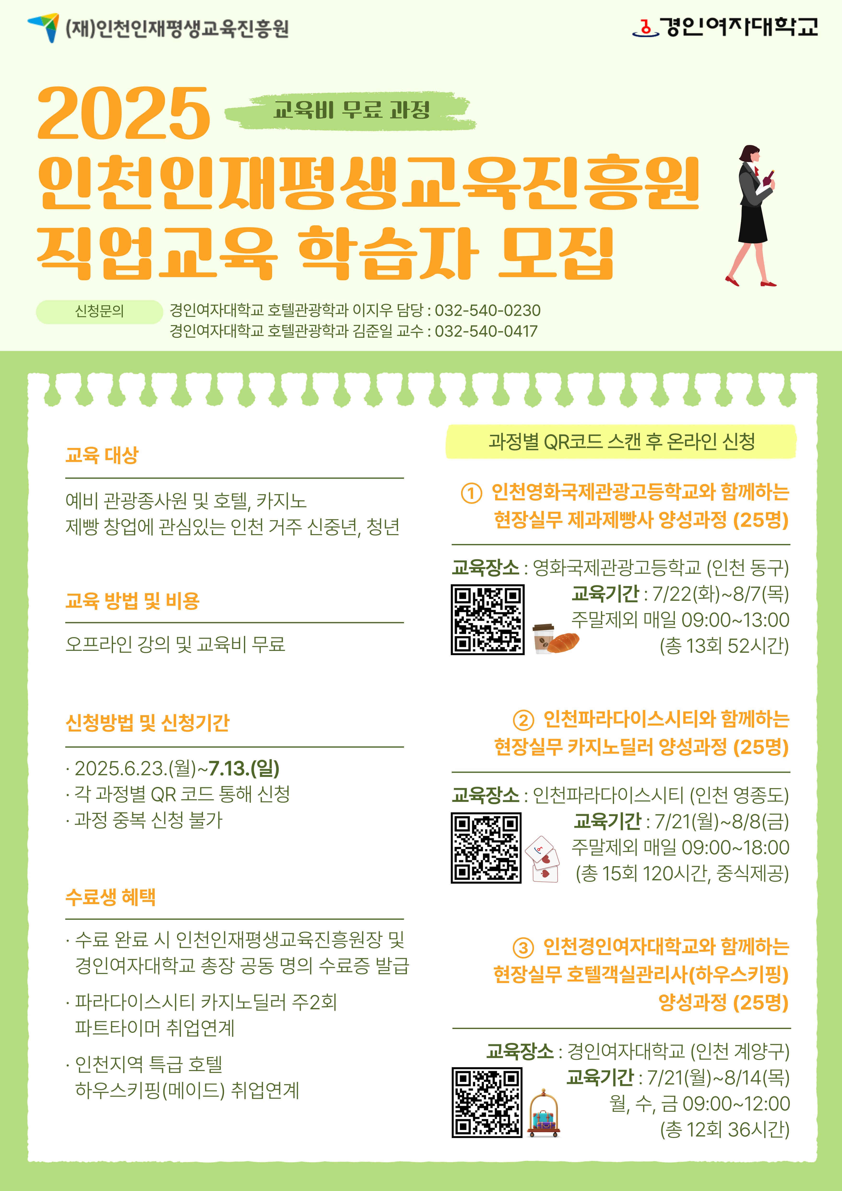 - 제과제빵사 / 카지노딜러 / 호텔객실관리사 양성과정 ☞ 032-540-0230(0417) / 경인여자대학교 산학협력단